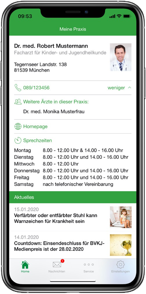 Um Informationen aus unserer Praxis aufs Handy zu erhalten können Sie sich bei der App „PraxisApp – Mein Kinder- und Jugendarzt“ registrieren. Mit der App ist auch eine Videosprechstunde möglich – bitte sprechen Sie uns bei Interesse darauf an.